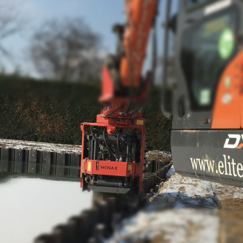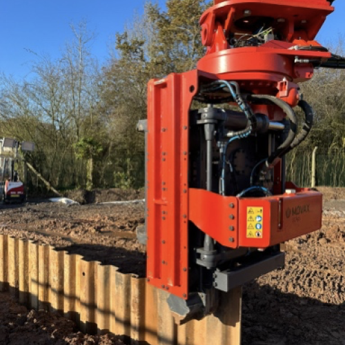 At Elite Sheet Piling, we specialise exclusively in the use of MOVAX side grip vibratory pile drivers – the most advanced, versatile and efficient solution for modern piling. As the largest side grip piling specialist in the UK and with the biggest fleet of MOVAX units in the country, we deliver unmatched capability, precision, and efficiency across all projects.